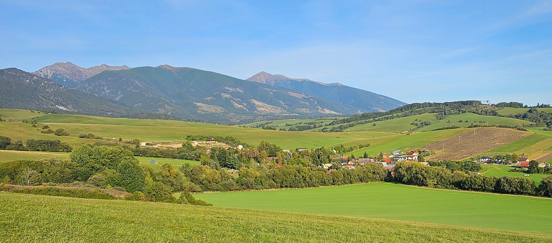 Slovensku - Jasná. Obec obklopujú lúky a kopce Západných Tatier.